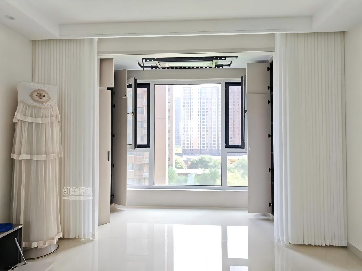 对于大落地窗,建议采用电动轨道,开合之间更显从容与科技感,轻松掌控空间光影的戏剧变化。
