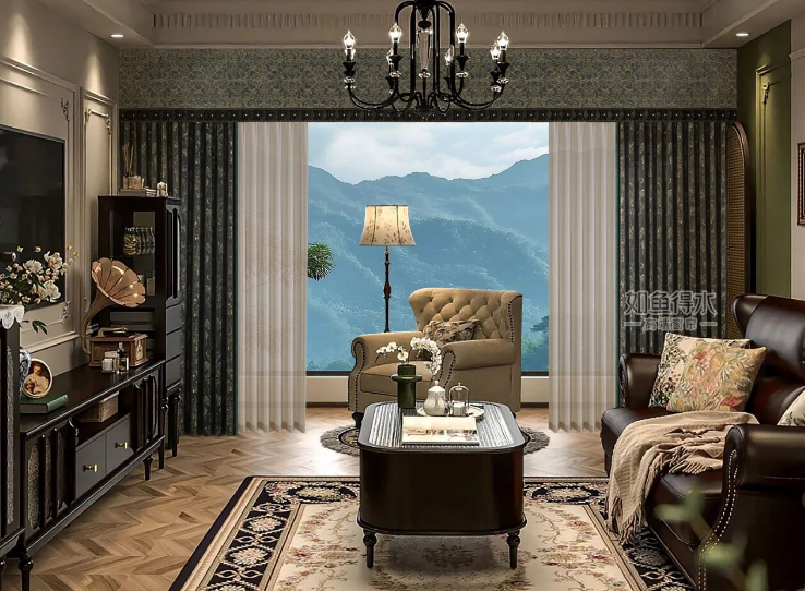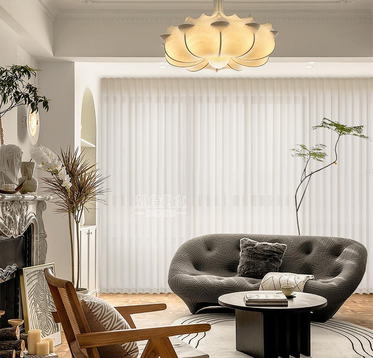 风格的共鸣:新中式空间,可选用带有宋画山水意境暗纹的香云纱或真丝;现代极简空间,则适合质地纯粹的羊毛帘或高支高密混纺帘。窗帘成为整体设计的一部分,而非孤立地存在。
