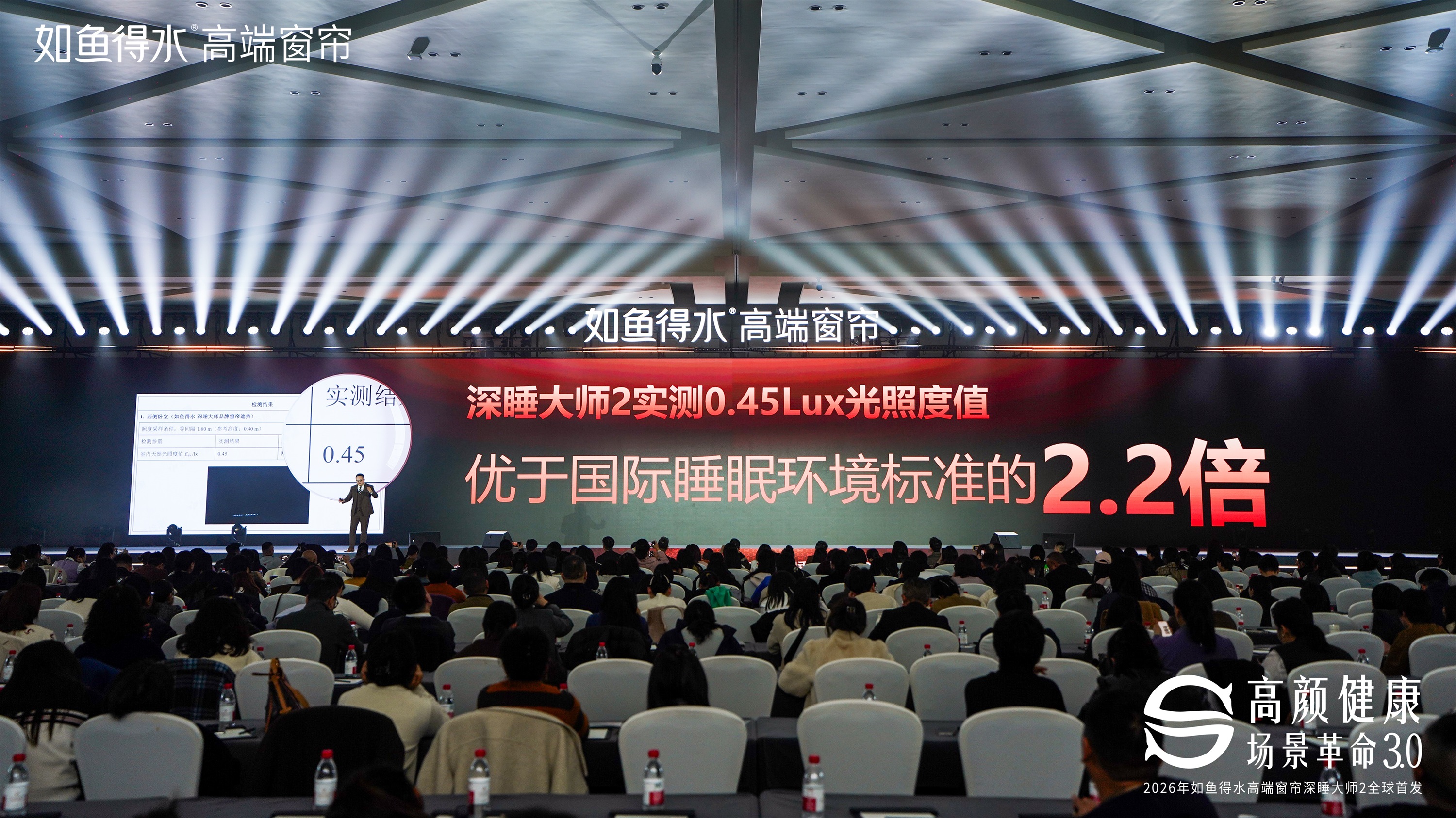 正是洞察到这一用户痛点,如鱼得水没有停留在面料参数的浅层竞争,而是选择回到用户真实的生活现场。2026年3月19日,“高颜健康 场景革命3.0——如鱼得水高端窗帘深睡大师2全球首发”发布会正式举行,“深睡大师2”携“极夜不漏光系统”重磅亮相,以“卧室深睡环境一体化解决方案”回应千万用户的睡眠焦虑。