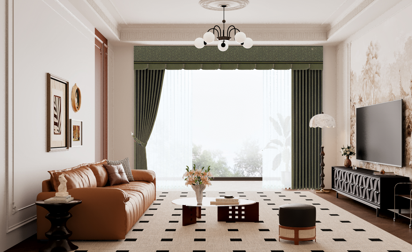 高度:尽量贴顶装,从天花板拉到地面(拖地1—2cm),视觉上拉高层高,千万别做“半截帘”,割裂空间。