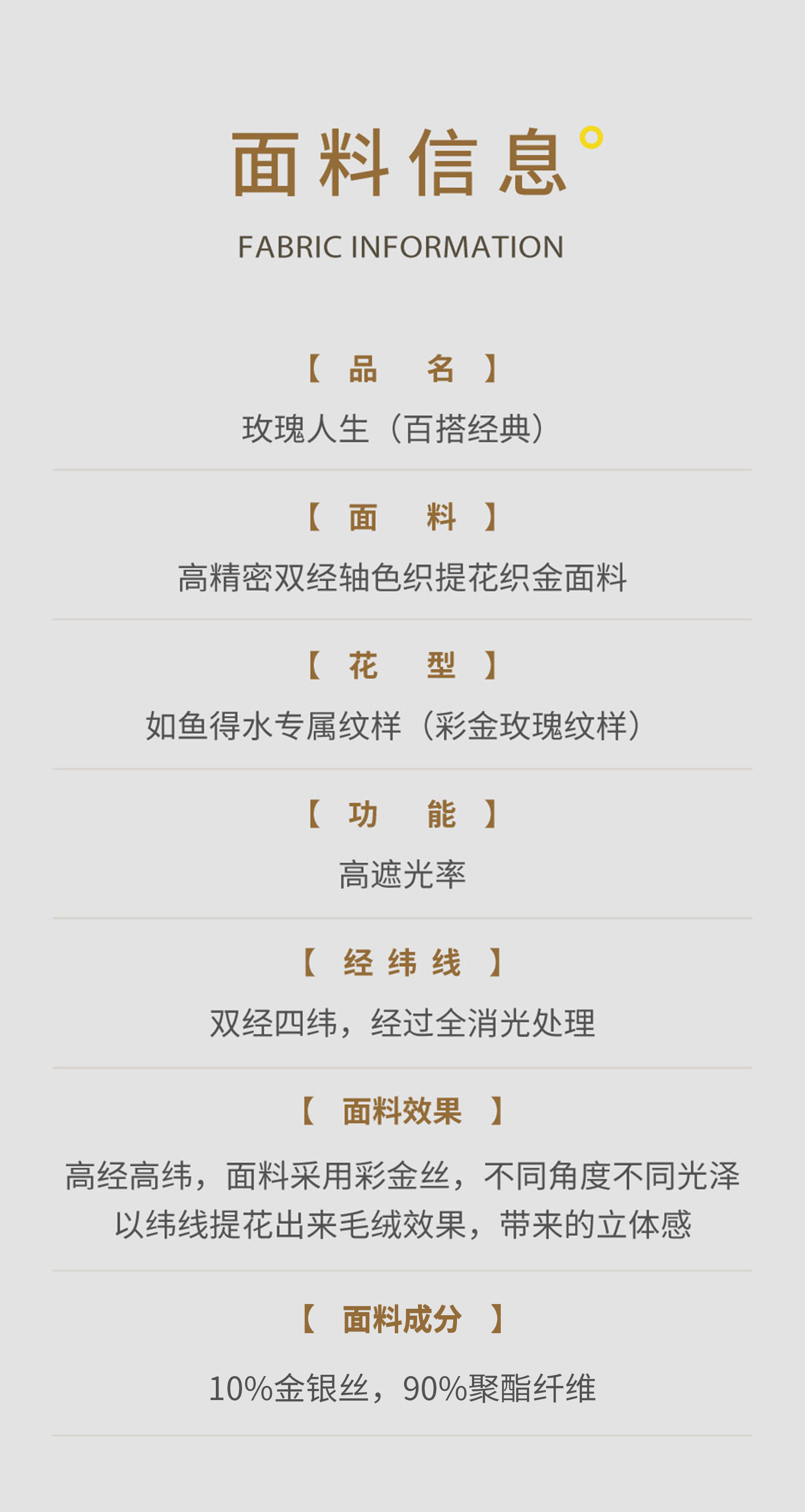 本款窗帘以蕾丝为主题元素,窗幔采用精致的蕾丝贴布绣工艺,勾勒出缱绻浪漫的玫瑰轮廓,点缀以珍珠花边,增添了柔美气息,下摆的分片式设计与珍珠纽扣结合,层次交叠,为设计注入动感韵律。