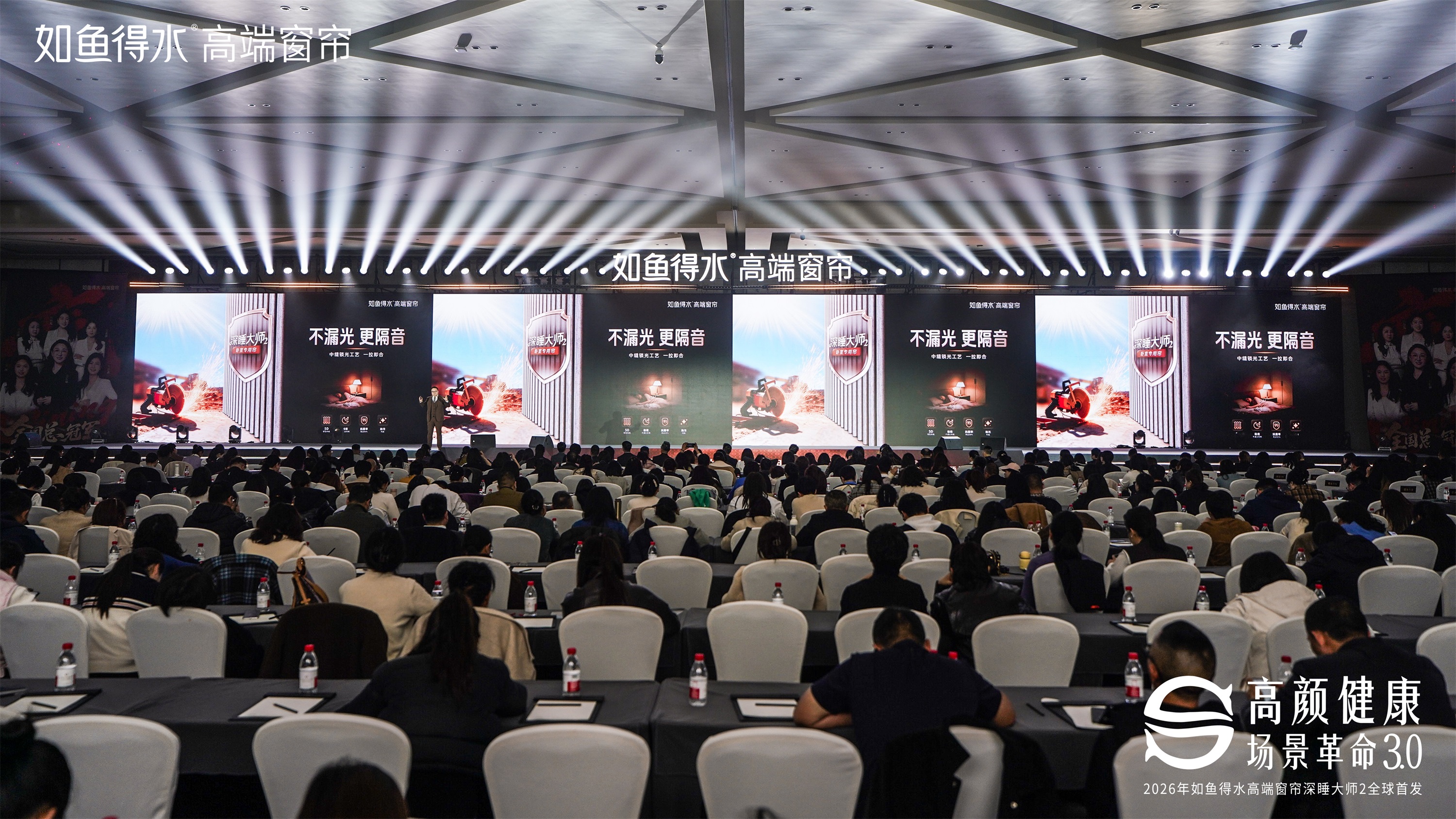 2026年3月19日,如鱼得水高端窗帘于杭州盛大举办“高颜健康 场景革命3.0”主题发布会,全球首发「深睡大师2」卧室深睡环境一体化解决方案。新品以颠覆性的“极夜不漏光”核心科技,重新定义健康睡眠的空间标准,正式开启卧室睡眠的深度革命。