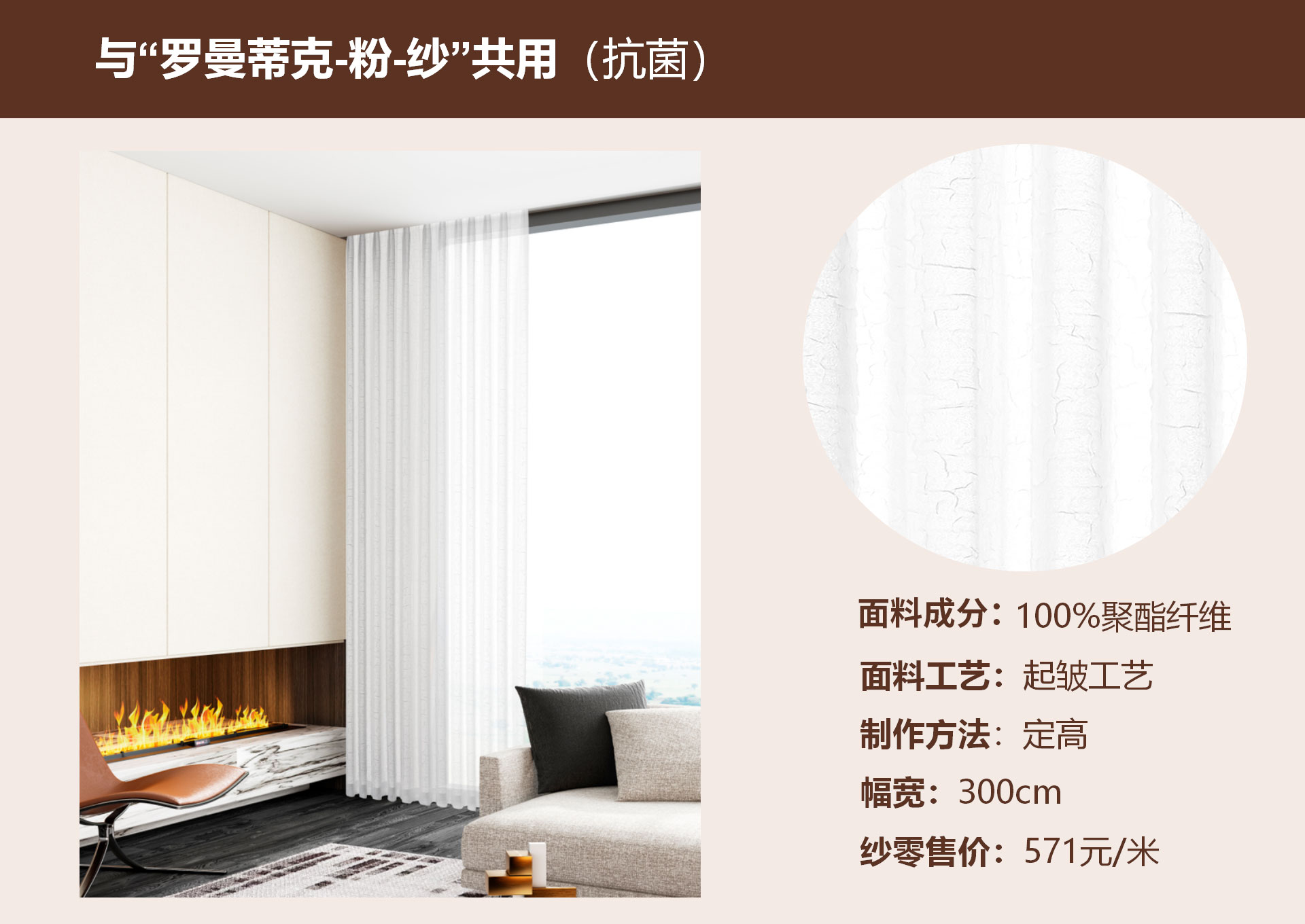 幔头运用香槟粉搭配浅灰色,雅致自然。日头渐落,湖面染上余晖,粉纱织金,天鹅在夕阳下互相依偎,水光波澜,宁静中多了一份柔美,流淌着无声的告白,温馨浪漫。帘身则采用纯洁的白鹭色浮雕提花面料,整体氛围温润宁静,仿佛被奶油融化的静止时光,温馨感扑面而来。
