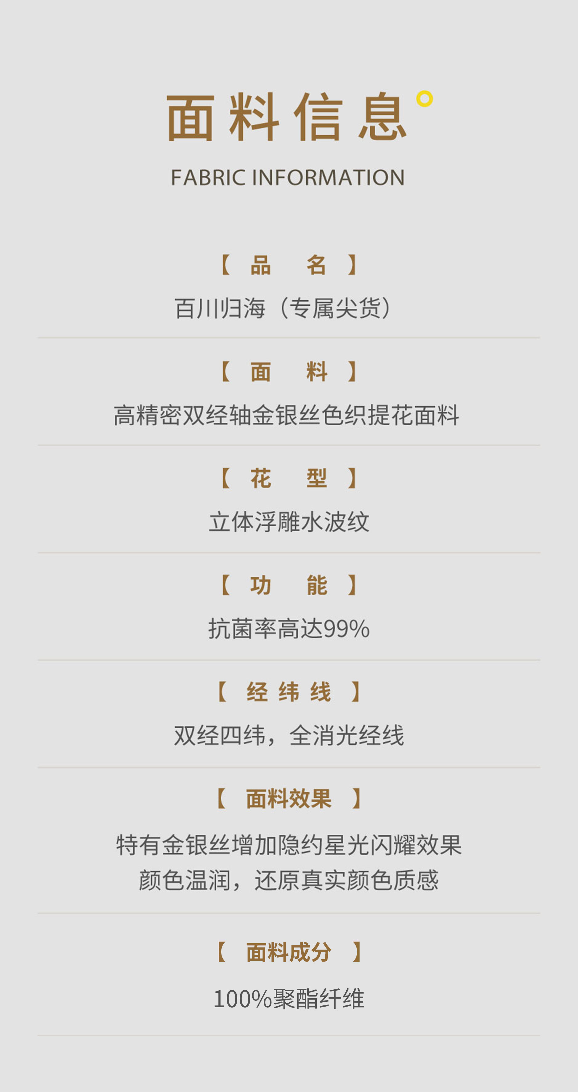 灵感源于交错几何图形,窗幔上银色几何刺绣花边,与底部双色错层的设计相碰撞,创造出极具现代感的视觉错位,黑银扣饰点睛,引领时尚新风。立边工艺,展现了西装工艺的精湛,“如鱼得水”东情西韵专属花型设计,优雅而轻奢,将东方美学融入格调生活。“百川异源,而皆归于海。面料独特的肌理犹如条条江河。