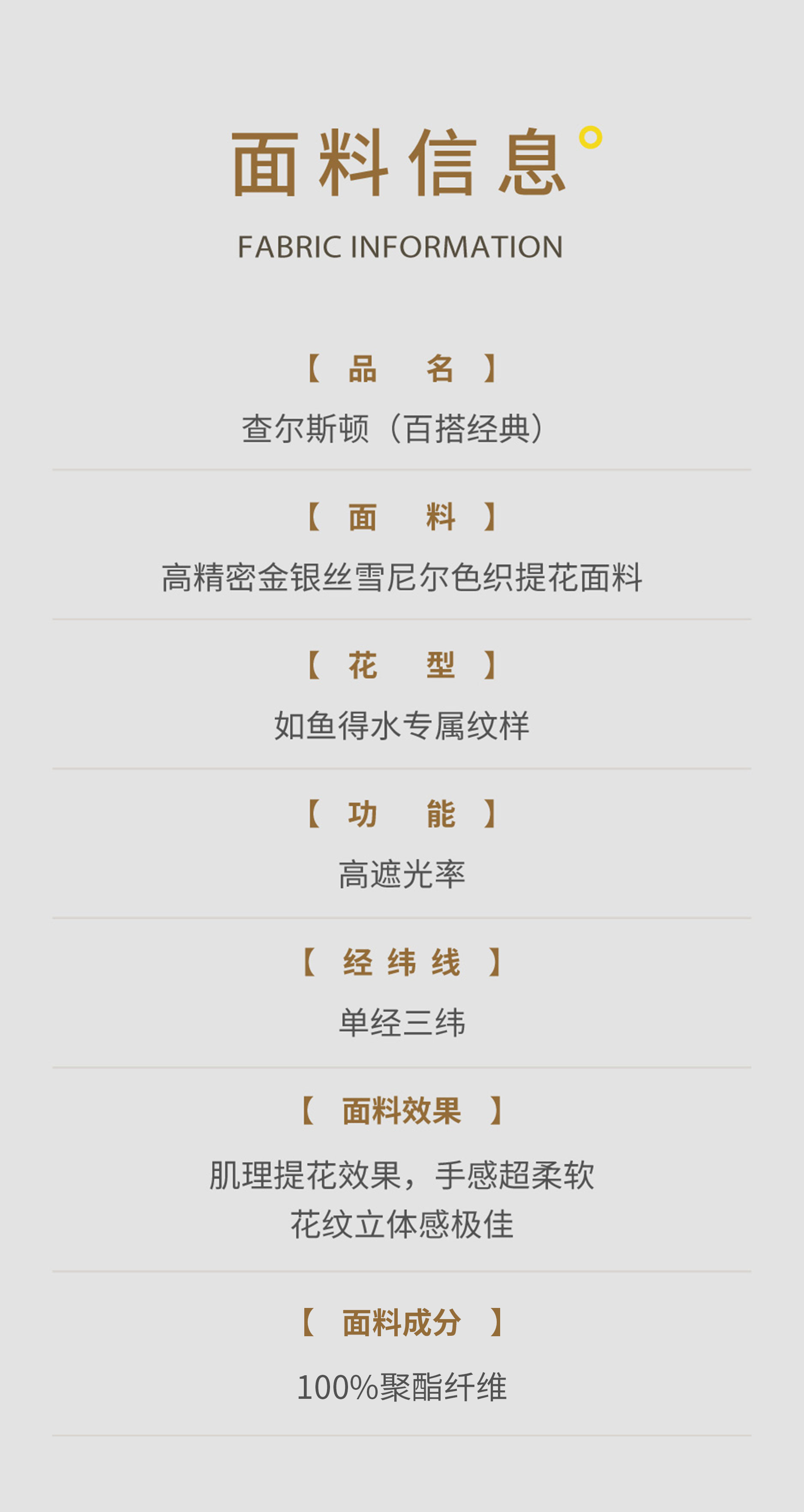 本款水波幔窗帘以法式宫廷的优雅风骨为底蕴,将平幔的端庄与水波的灵动融为一体,尽显法式高贵气质,平幔部分绣有佩斯利经典纹样,卷草曲线融入品牌标识以浅金丝线层层铺展,既保留了欧式纹样的繁复美感,又通过对称构图传递出沉稳格调,水波使用复古蓝,边缘镶缀的金色流苏,更添灵动气息。腰条处嵌有金色滚绳,于细节处彰显精致。帘身以金色的花边搭配复古蓝立边,金色元素贯穿整体,让设计在复古与精致间达成平衡,为空间注入如法式沙龙般的典雅氛围。
